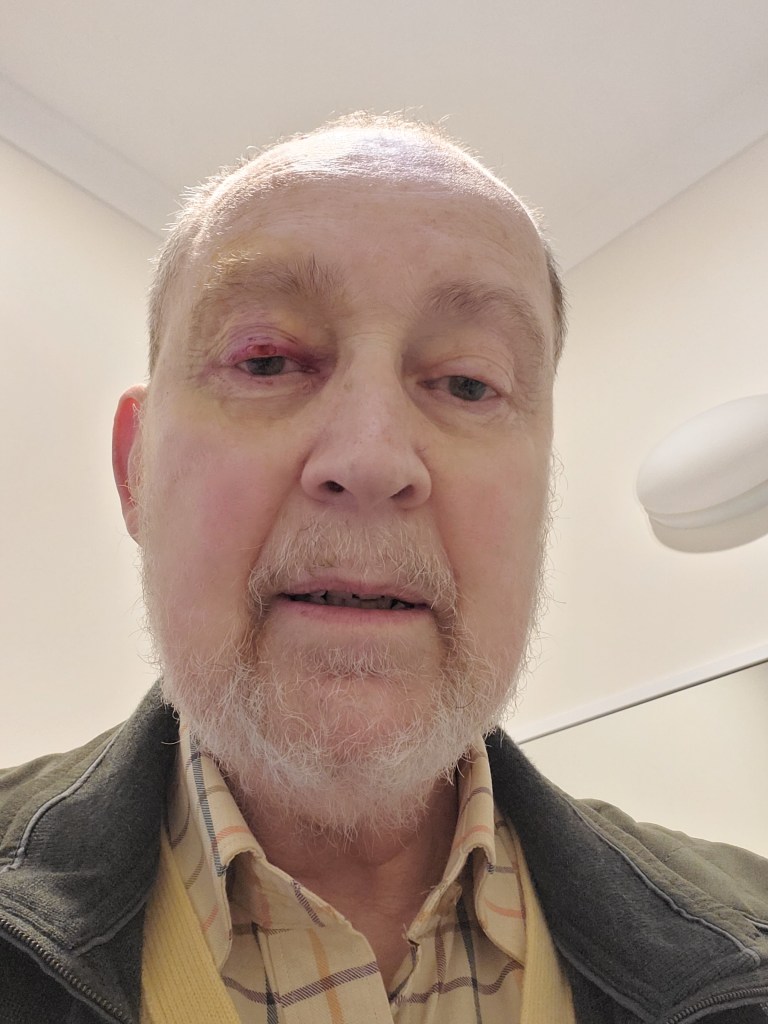 This morning I had a brief operation to remove a small growth on my upper left eyelid. (For some reason, the picture above is reversed; the shiner is definitely above my left eye.) The growth had been detected during my annual eye test. I hadn’t really noticed this; it was blocked by the upper frame of my glasses, and I couldn’t see it when I wasn’t wearing my specs! Anyway, the optometrist recommended that the growth be removed by an opthalmologist.